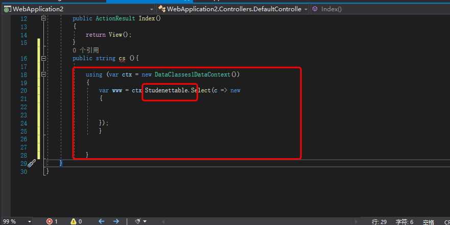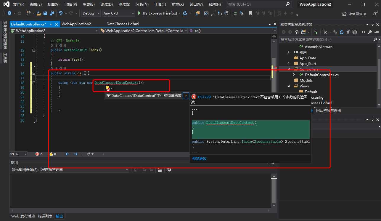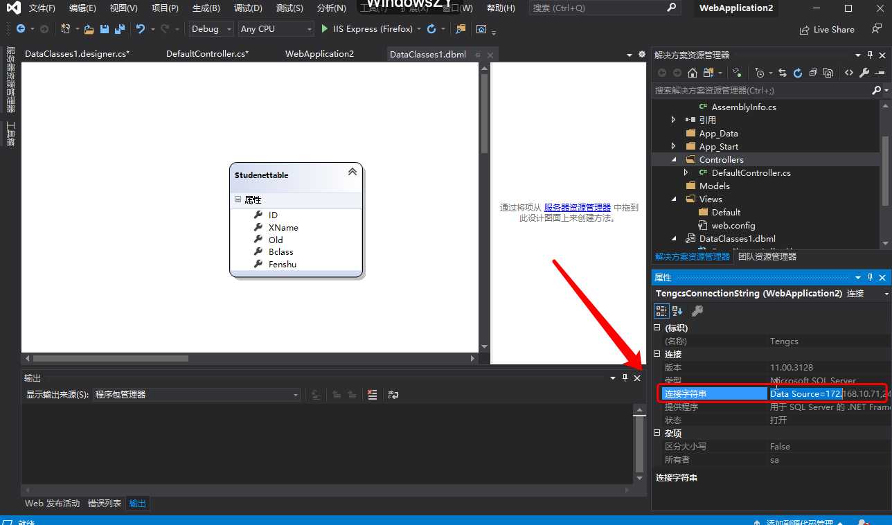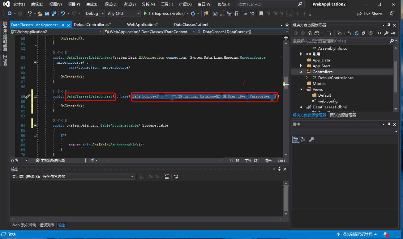 我在控制器里写了一个方法 例子,这个时候还需要去配置连接字符串,如下图,点击生成构造函数f12 进入这个方法