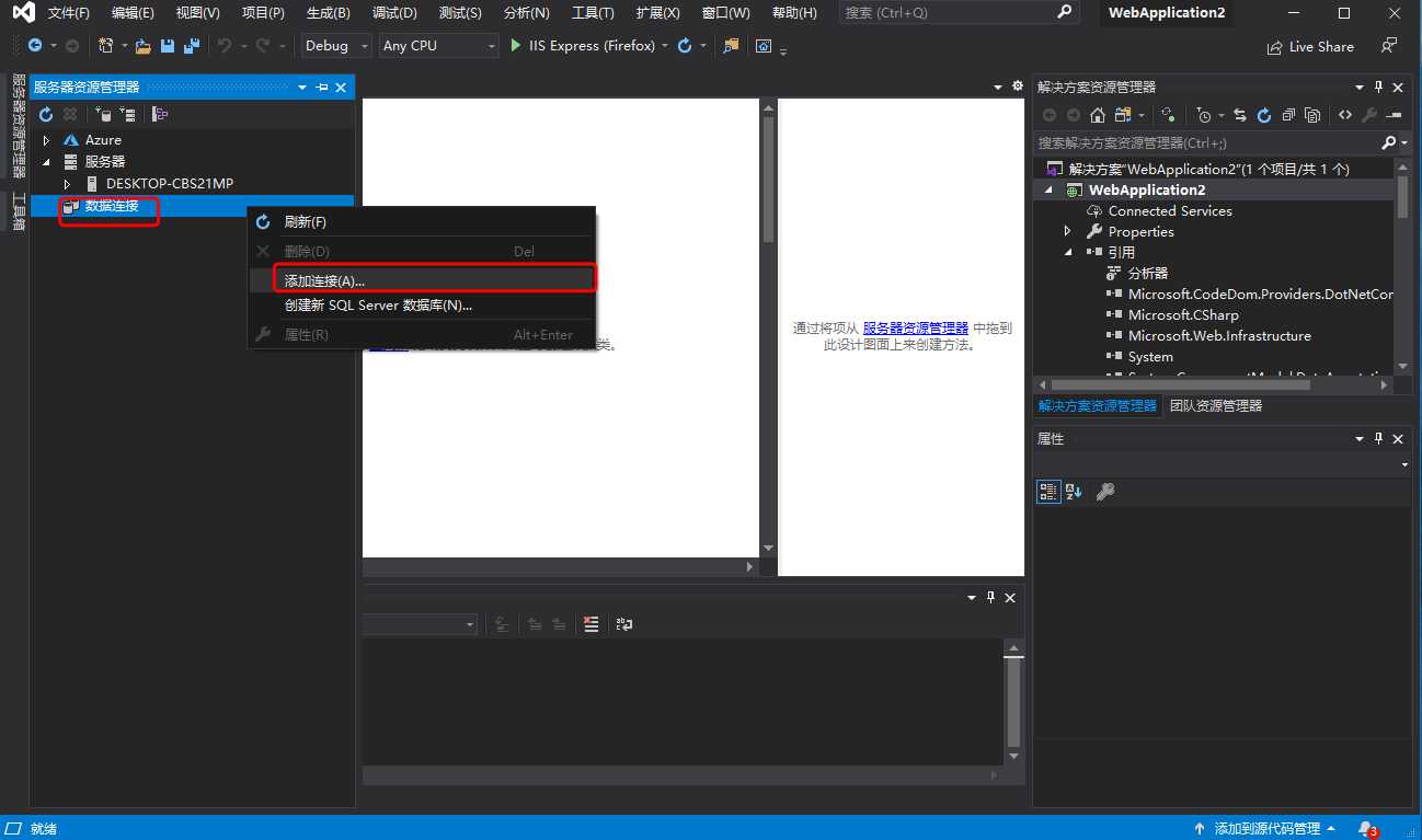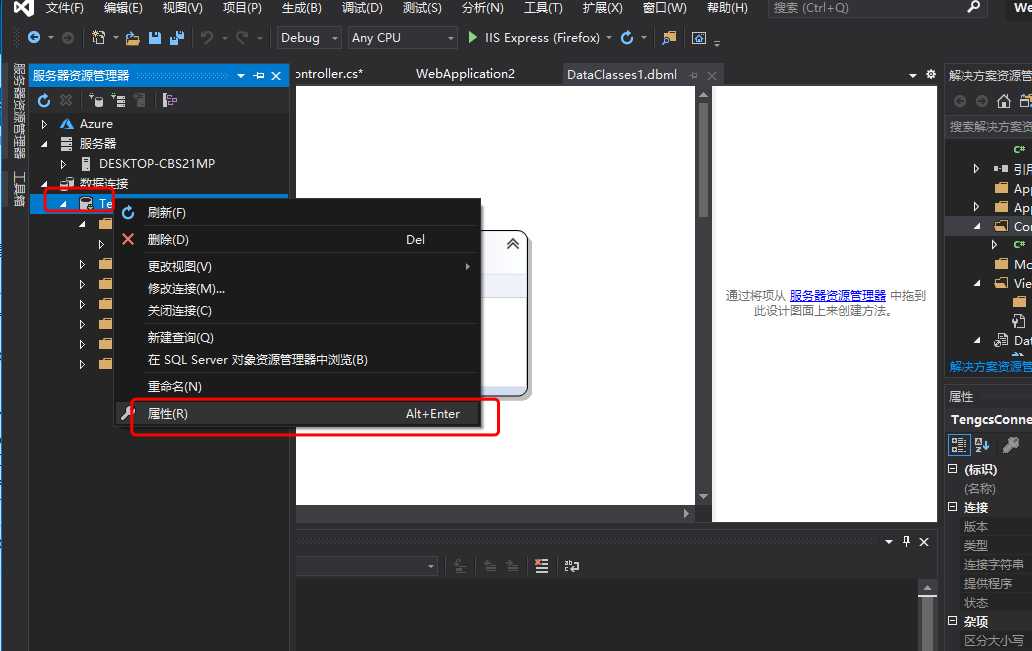 如何查看数据库连接字符串,如下图:点击属性,在属性里可以看到连接字符串,然后全部复制就可以了