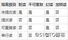 **事务在提交之前对其他事务可不可见*** read unaommitted(未提交读)* read committed(已提交读)* Repeatable read(可重复读)* seaializable(可串行化)