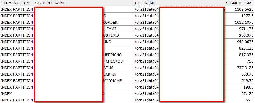 /* Formatted on 2020/5/19 下午 02:48:46 (QP5 v5.163.1008.3004) */ SELECT E.SEGMENT_TYPE AS SEGMENT_TYPE, E.OWNER || ‘.‘ || E.SEGMENT_NAME AS SEGMENT_NAME, F.FILE_NAME AS FILE_NAME, SUM (E.BYTES) / 1024 / 1024/1024 AS SEGMENT_SIZE_GB FROM DBA_EXTENTS E INNER JOIN DBA_DATA_FILES F ON E.FILE_ID = F.FILE_ID WHERE F.FILE_ID = 7GROUP BY E.SEGMENT_TYPE, E.OWNER, E.SEGMENT_NAME, F.FILE_NAMEORDER BY 4 DESC;