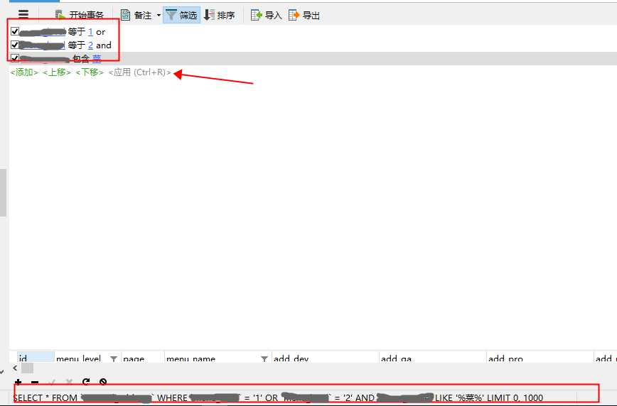 使用mysql连接工具Navicat 双击表选择需要的条件 点击 “应用”,下方会生成对应的sql