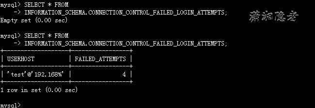 注意,MySQL服务重启过后,INFORMATION_SCHEMA.CONNECTION_CONTROL_FAILED_LOGIN_ATTEMPTS中的数据全部前空。