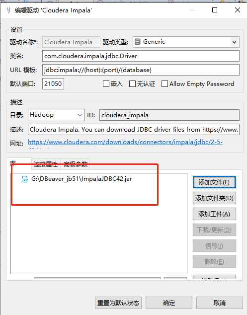 我们要去下载一个这个ImpalaJDBC42.jar,导入即可