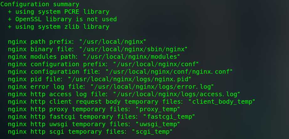 ./configure --prefix=/usr/local/nginx --conf-path=/usr/local/nginx/conf/nginx.conf --pid-path=/usr/local/nginx/conf/nginx.pid --lock-path=/var/lock/nginx.lock --error-log-path=/var/log/nginx/error.log --http-log-path=/var/log/nginx/access.log --with-http_gzip_static_module --http-client-body-temp-path=/var/temp/nginx/client --http-proxy-temp-path=/var/temp/nginx/proxy --http-fastcgi-temp-path=/var/temp/nginx/fastcgi --http-uwsgi-temp-path=/var/temp/nginx/uwsgi --http-scgi-temp-path=/var/temp/nginx/scgi