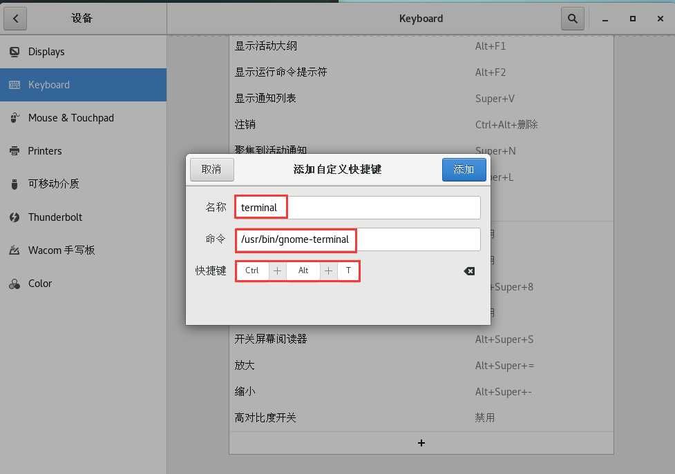 由于centos没有默认的打开终端的快捷键,所以需要自己配置。