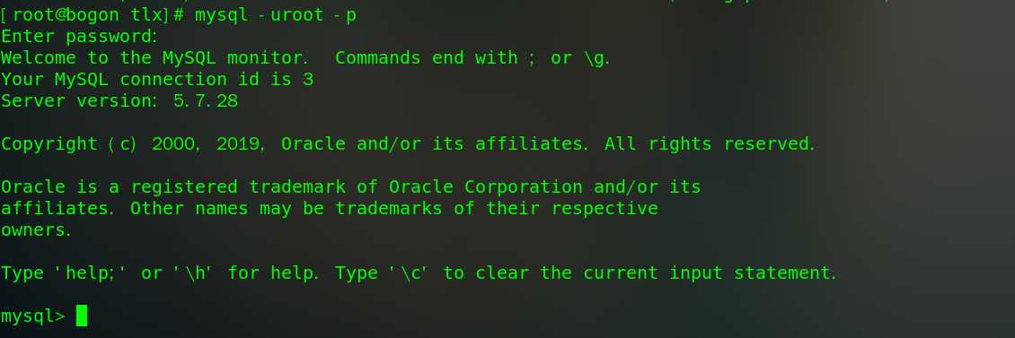 可以看到,mysql已经正常运行了,想要进入数据库,需要知道root密码。