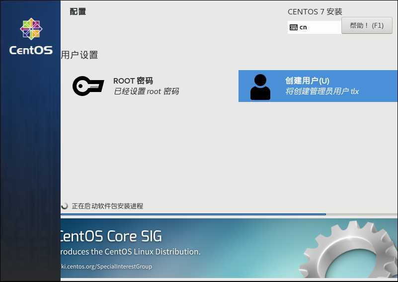 点击开始安装,在安装界面设置root密码,建立账户(设为管理员记得打勾)。
