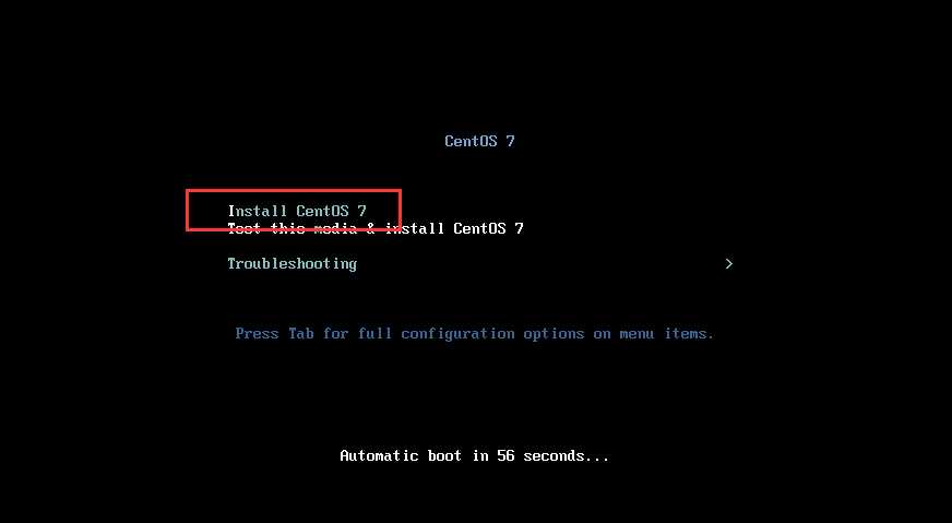 点击开启虚拟机,出现选项,用上下键选择第一个选项进行安装。