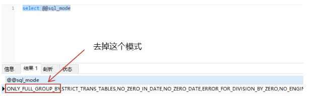 关于sql_mode,像下面这个报错,就是因为group by字段必须完全显示在查询列里,所以去掉这个模式,就不在报错了。
