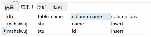 1 SELECT db,table_name,column_name,column_priv2 FROM mysql.columns_priv WHERE user=‘test1‘;
