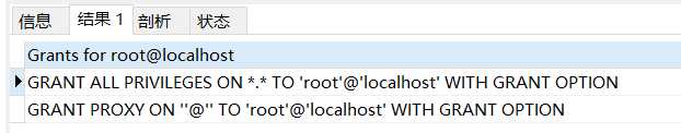 1 SHOW GRANTS FOR ‘root‘@‘localhost‘;