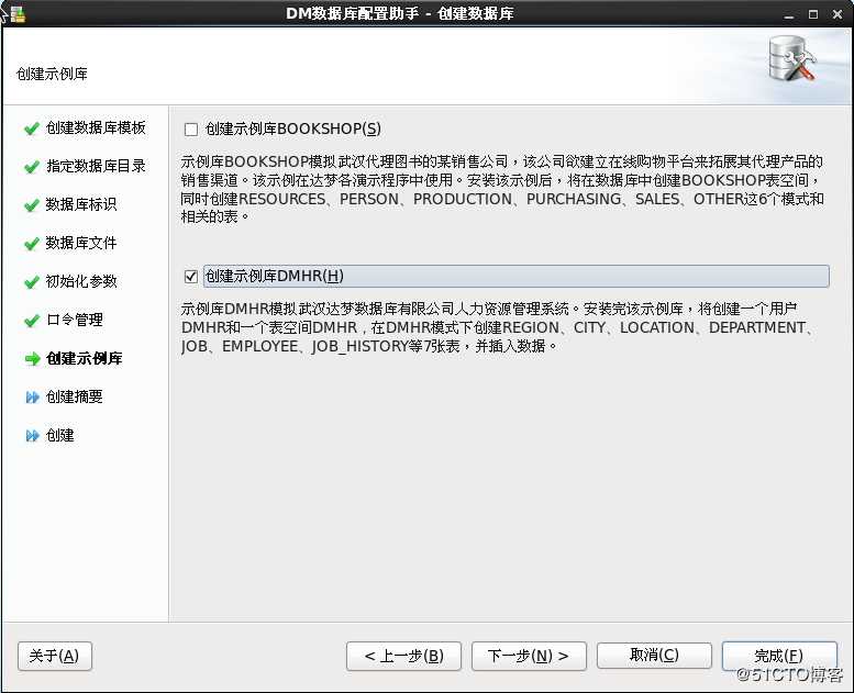 在测试环境下,为了方便测试选择创建示例库DMHR: