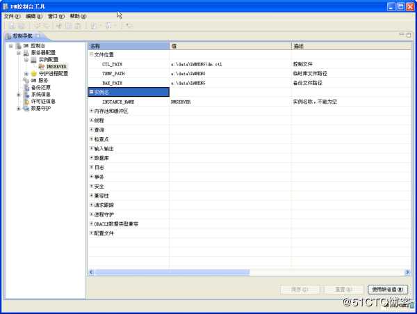 通过 DM 控制台工具,查看实例配置属性,可以查看到如下信息:文件位置、实例名、内存池和缓冲区、线程、查询、检查点、输入输出、数据库、日志、事务、安全、兼容性、请求跟踪、进程守护、ORACLE 数据类型兼容和配置文件。