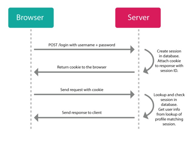 通过从登录页面向服务端发送用户名/密码组合来创建新会话。如果服务器可以使用该用户名和密码来匹配用户,它将在服务器上生成一个新的会话对象,并在客户端上设置一个带有该会话ID的cookie。后续用户发出的请求需要带上cookie,服务端就可以验证是哪个用户以及验证会话是否有效。