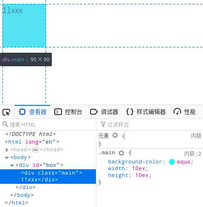 这个单位表示元素字体的 x 的高度。在含有 ‘ X ’字母的字体中,它是该小写字母的高度,对于很多字体而言,1ex ≈ 0.5em。