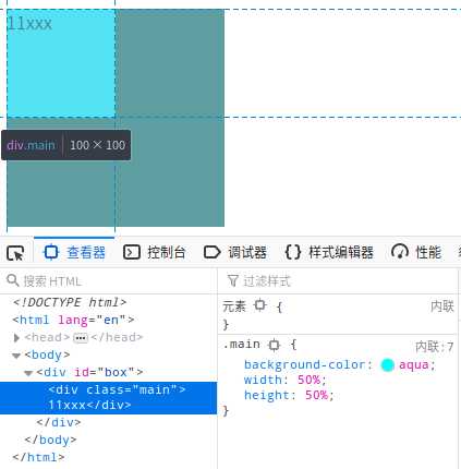 父元素设置了绝对定位,子元素设置了绝对定位,所以子元素的大小是相对于父元素的 50%.