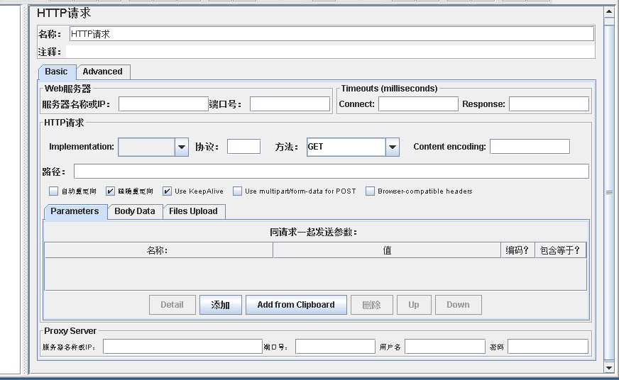 (11)Parameters、Body Data以及Files Upload :具体使用哪一个,主要取决于在HTTP信息头管理器中Content-Type设置的什么类型