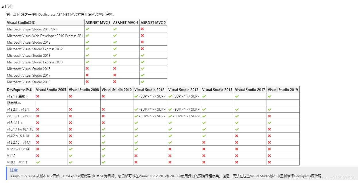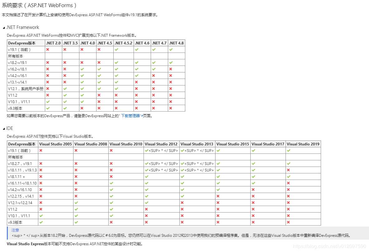 DevExpress各大版本支持的VS版本和支持的.net版本图(Winform、WPF、ASP.NET MVC和ASP.NET WebForm)