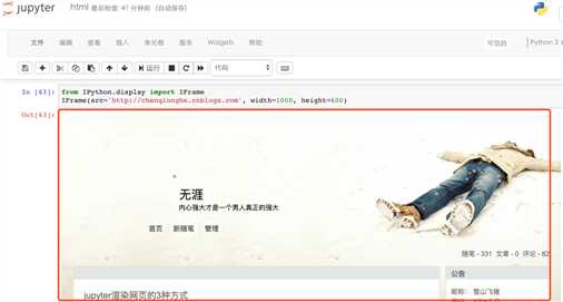 有时候我们需要直接将获取到的内容直接显示出来,如果再新建一个文件再打开未免太麻烦,jupyter提供了几种方式可以比较方便的渲染html