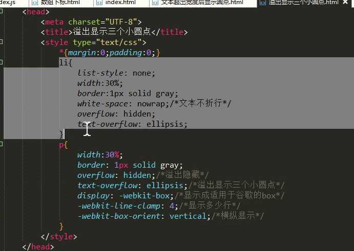 我给li定义了固定的宽度只要超出后就会显示三个小圆点,在css样式中也加上了注释,非常的清晰。