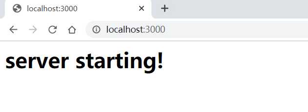 1 let http = require("http");2 3 let server = http.createServer((req, res) => {4 res.end("<h1>server starting!</h1>")5 });6 ?7 server.listen(3000, () => {8 console.log("listening on *:3000");9 });