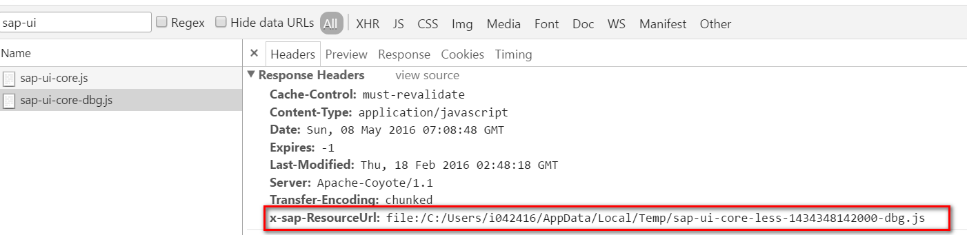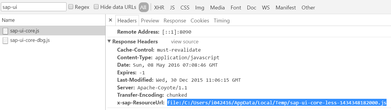你会发现这个folder只是temp folder,这是你在Eclipse里run as server时,Eclipse自动把UI5 core library里的js解出来,放在这个temp folder供加载用的。