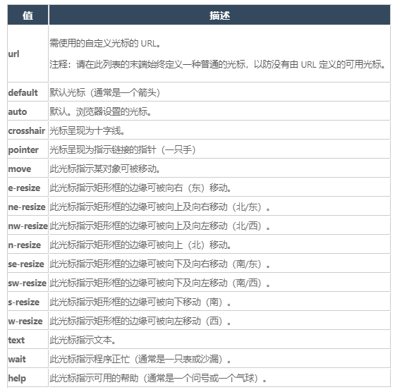 这个属性定义了鼠标指针放在一个元素边界范围内时所用的光标的形状。