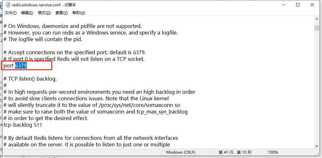 找开redis.windows-service.conf文件可查看redis端口,用于连接redis。