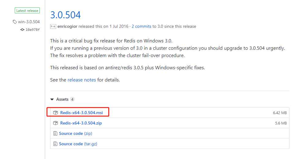 下载地址:https://github.com/microsoftarchive/redis/releases