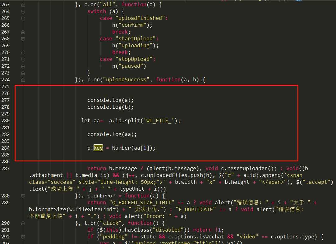 let aa= a.id.split(‘WU_FILE_‘); b.key = Number(aa[1]);