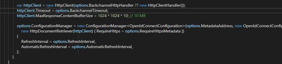 你可以跳过远程调用,而改用本地直接配置.参数在JwtBearerOptions的TokenValidationParameters属性中配置.