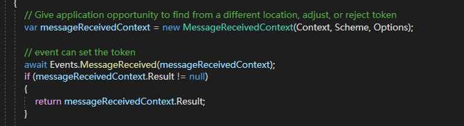 第一步,生成上下文,执行通过JwtBearerOptions参数注册的MessageReceived事件,源码如下: