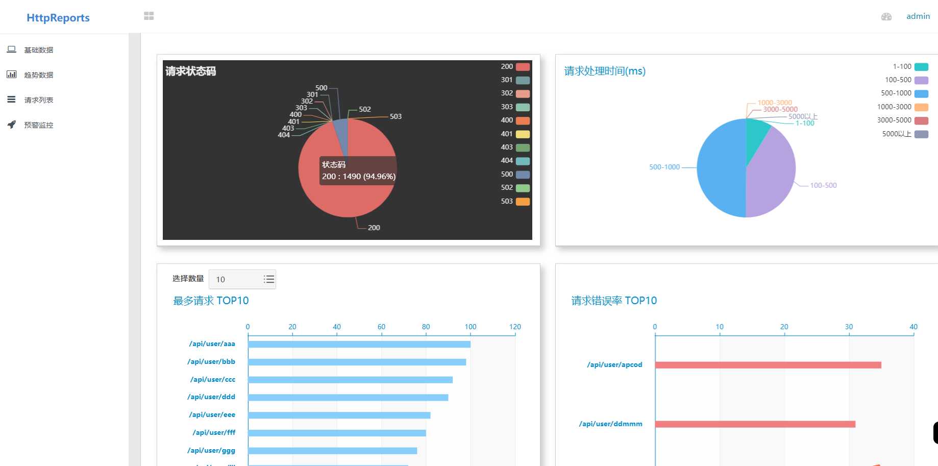 HttpReports 是 .Net Core 下的一个Web项目, 适用于WebAPI,Ocelot网关应用,MVC项目,非常适合针对微服务应用使用,通过中间件的形式集成到您的项目中,可以让开发人员快速的搭建出一个 数据统计,分析,图表,监控 一体化的 Web站点。