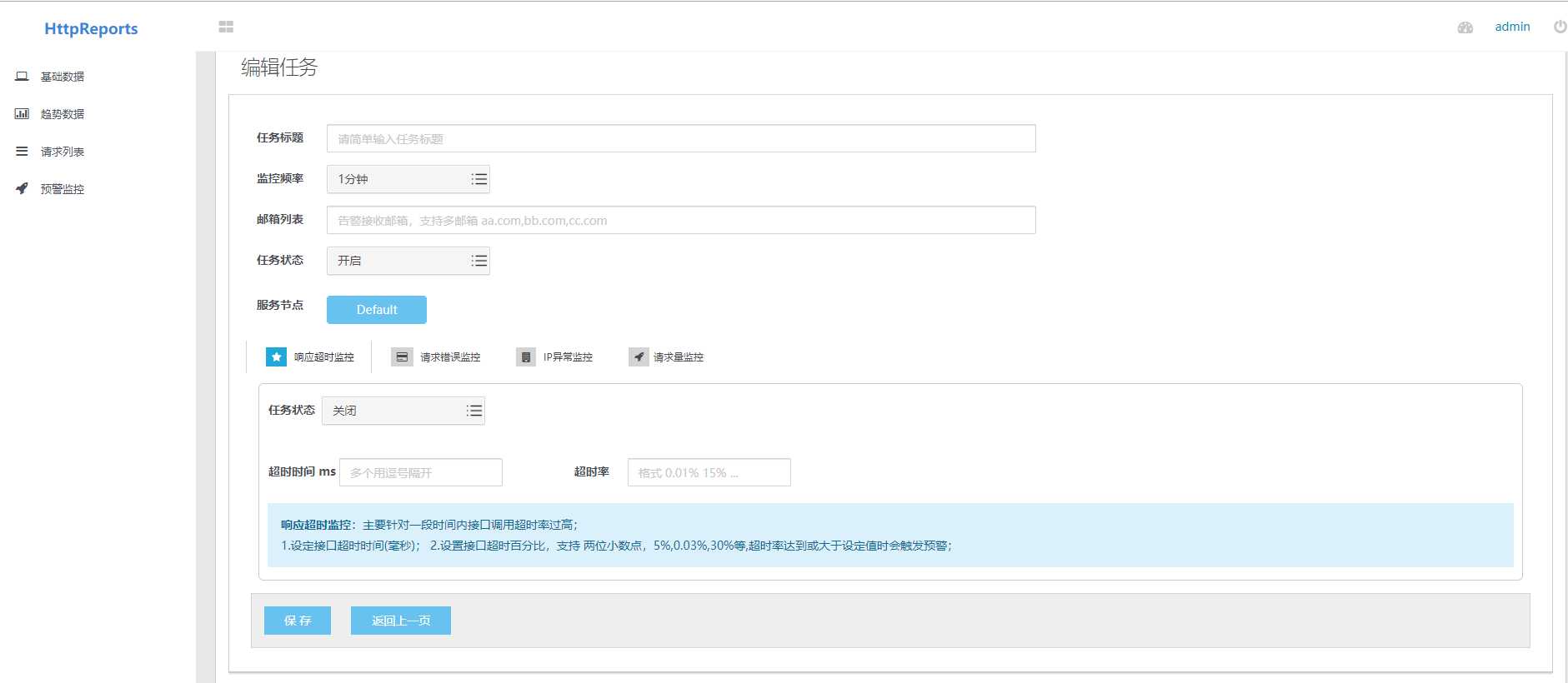 预防一段时间内接口大量超时,设置超时时间为4000ms , 超时率为0.05% (最多支持两位小数,设置值要带上%号)