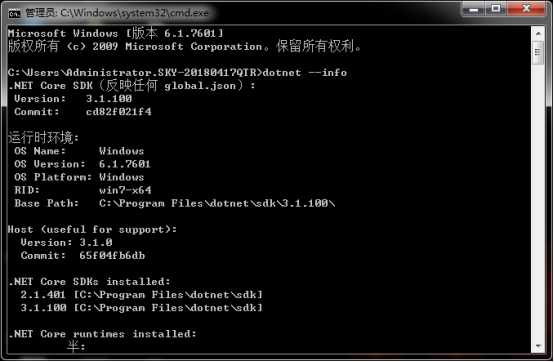 1、用dotnet --info查询当前安装的.NET Core SDK版本