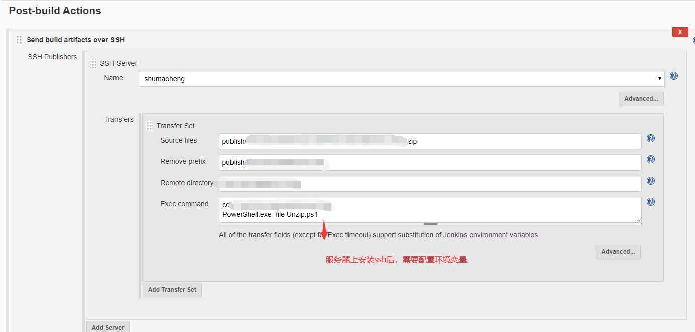 Source files :需要上传的文件地址,相对地址(比如:D:\Program Files\Jenkins\workspace\test\a.zip;对应这里a.zip,test为当前构建的项目)
