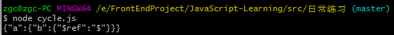 function circularReference() { let obj1 = { }; let obj2 = { b: obj1 }; obj1.a = obj2; let c = JSON.decycle(obj1); console.log(JSON.stringify(c));}circularReference();运行结果