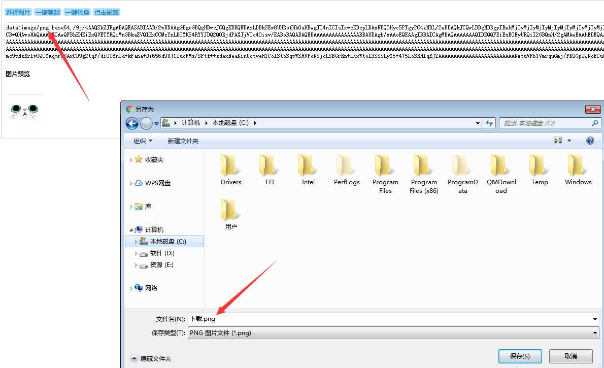 很早就出来的一种方法,不过最近在研究图码互转的时候发现一个问题,通过base64编码转成图片的时候,修改格式码里面的格式,比如将jpeg改成png的话,就可以直接无损修改图片格式化了