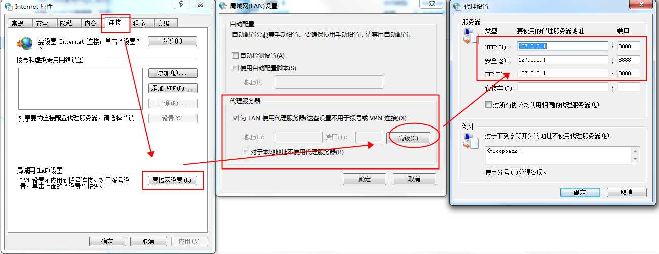 基于上面的原理,Fiddler就实现了经过本机计算器请求的数据抓包了。。。
