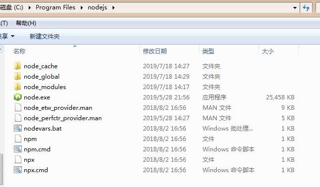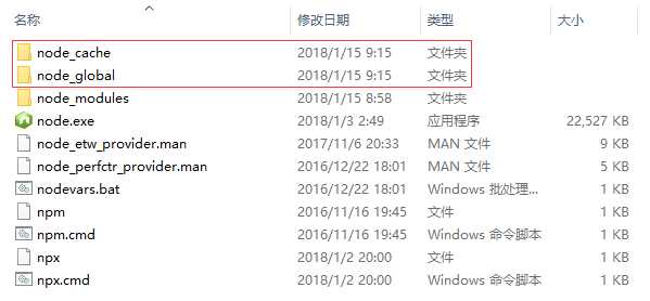例如:我希望将全模块所在路径和缓存路径放在我node.js安装的文件夹中,则在我的安装目录下创建两个文件夹【node_global】及【node_cache】如下图: