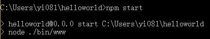 启动 helloworld,输入命令:npm start,如下图,新创建的 helloworld 已经运行在3000端口上