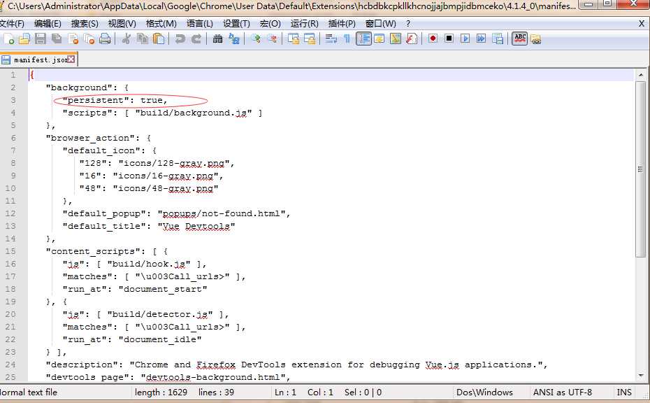修改 C:\Users\Administrator\AppData\Local\Google\Chrome\User Data\Default\Extensions\hcbdbkcpkllkhcnojjajbmpjidbmceko\4.1.4_0 目录下的mainifest.json 中的persistant为true: