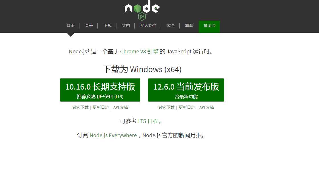 官方地址:https://nodejs.org/en/ 或 https://nodejs.org/zh-cn/