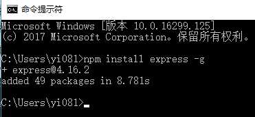 npm install express -g # -g是全局安装的意思