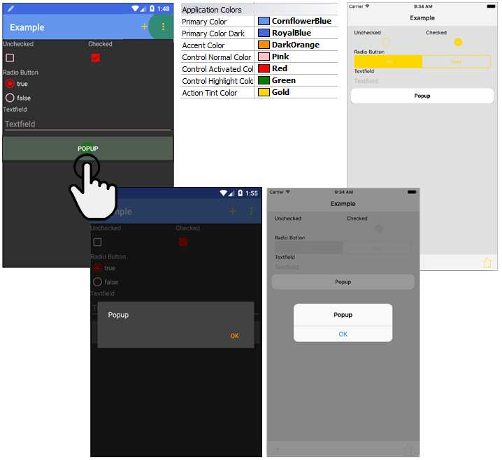 用于定义主要操作和标准控件的颜色。操作包括编辑焦点、复选框、单选按钮等;标准控件包含日期选择器、弹出按钮、进度条等。