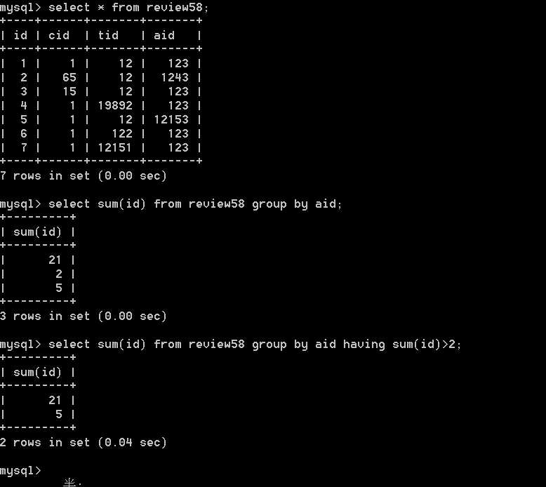 然后重点来了,如果分组时,出现了聚合函数,就不能再用where来进行筛选了,必须用having来进行筛选了。
