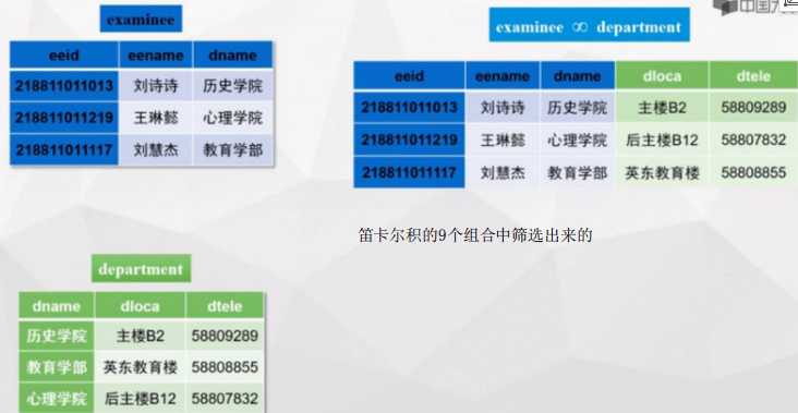 关系表:数学上把一系列域上的笛卡尔积的子集称为关系。(笛卡尔积:数据的集合)