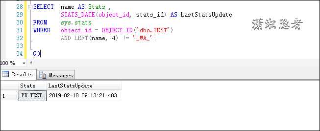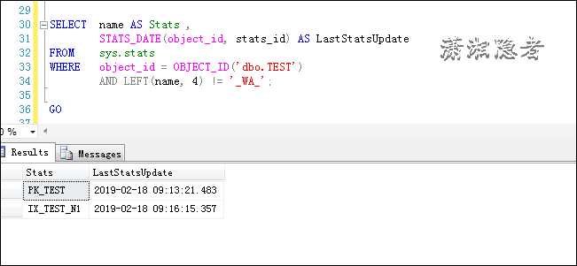 STATS_DATE(object_id, stats_id) AS LastStatsUpdate