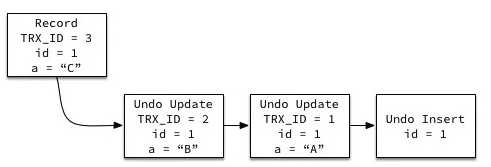 (TRX_ID: 事务版本号,为3时表示最新版本快照,通过回滚指针依次指向2,1,版本号)
