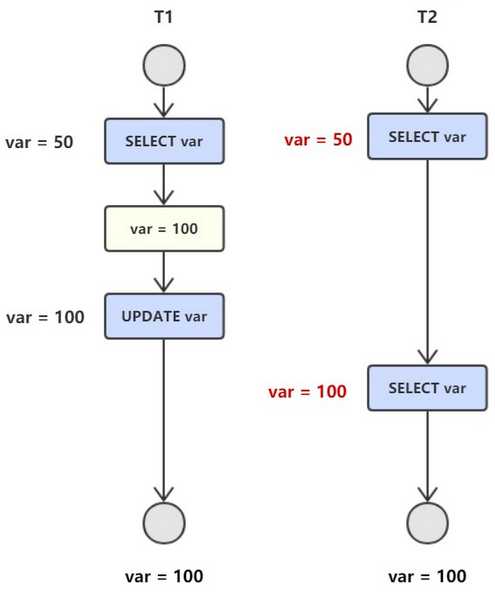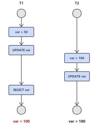 丢失修改:事务T1和T2都修改了数据,T1先修改,T2后修改,T2的修改覆盖了T1的修改。